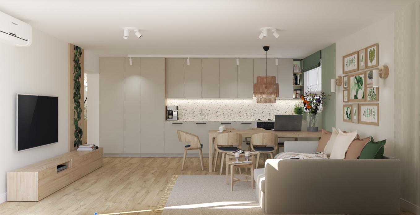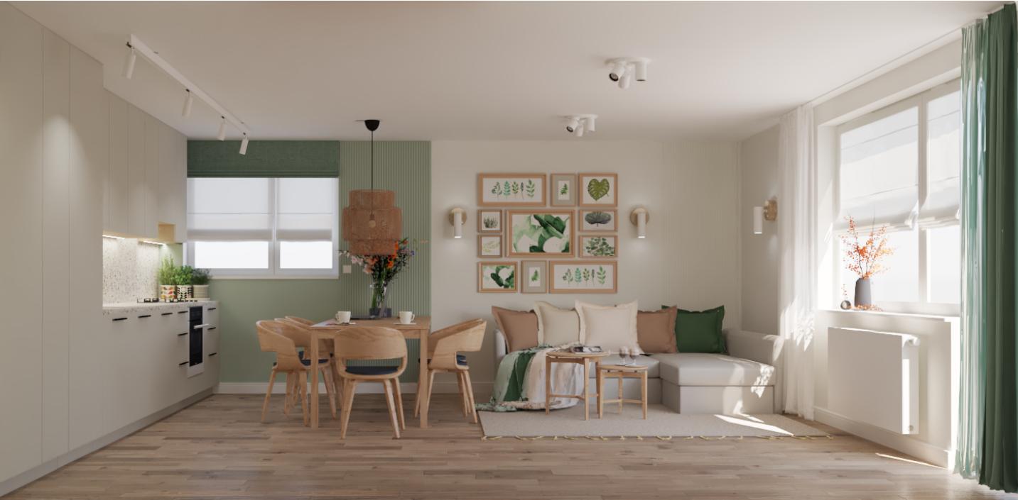 - zakres projektu: - moodboard - różne propozycje kolorystyczne i materiałowe dla ustalonego wcześniej układu - wizualizacja fotorealistyczna części dziennej