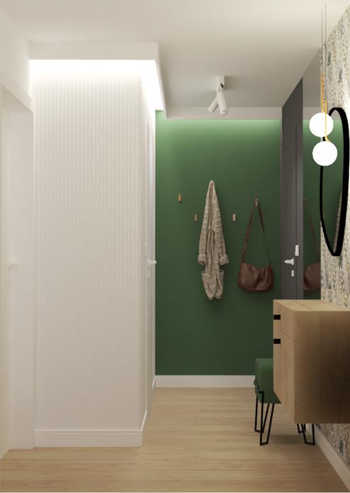 - przedmiot projektu: otwarta część dzienna: salon z aneksem kuchennym i jadalnym, korytarz
